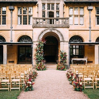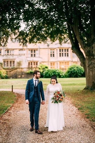 Being an October wedding Sara and Luke wanted a beautiful autumnal scheme with a colour palette ranging from soft peach to burnt orange and dark burgundy. Flowers included David Austin roses, locally grown dahlias, scented stocks, thistles, scabious, ammi, wax flower, astilbe, euphorbia, hydrangea, lysimachia, skimmia, snapdragons…to name but a few! Foliage is especially lovely at that time of year, so we also included lots of it, including copper beech leaves as well as a variety of textures including thistles, berries and seed heads. The couple live in the US so all our communication was via email and zoom, and after a thorough consultation process I created several mood boards to help them visualise the overall look and feel of their florals. These boards provided a great reference point throughout our time of working together. As Combe Lodge is a such an impressive venue they also wanted some impactful and dramatic installations to match - both as a backdrop for their outside ceremony as well as top to bottom florals along the main staircase in the house. Sadly, along with thousands of other couples in the same predicament, their initial date in 2020 had to be postponed to 2021, but when the big day did finally arrive it was definitely worth the wait! It was an absolute pleasure to be part of their special day and create some really beautiful florals that fitted the venue, the time of year, and them as a couple, perfectly.